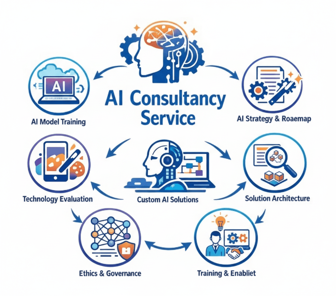 AI consultancy is like a expert guidance from the tech experts provided to the organizations who are aiming to integrate artificial intelligence in their current workflow that make their process smooth, fast, smart, report seamlessly and easier that enhance operational efficiency at large and drives innovation.