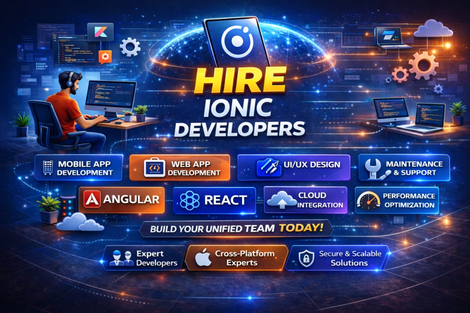 Our Ionic developers specialize in Ionic with Angular, Capacitor, TypeScript, and advanced component-driven architecture.