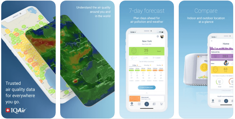 AirVisual also works in 7-day forecasts so that you can plan ahead on your outdoor activities to ensure you’re going out in healthy air.