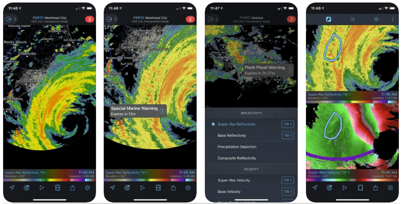 You can get a plethora of information regarding the weather changes in this app since it also gives you access to NEXRAD Level 3 and super-resolution radar data.