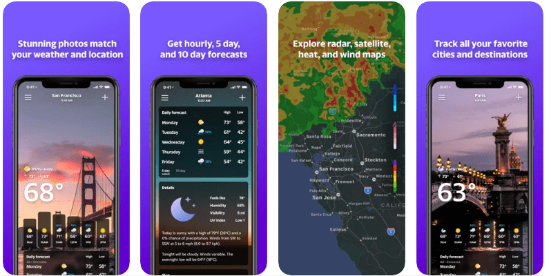 The beautiful Yahoo Weather app boasts a gorgeous interface that is both informative and striking. Yahoo Weather is another great accurate weather app.